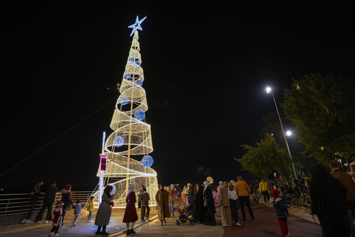 In Iraq, a Christmas tree was decorated with Palestinian flags and symbolic bodies in funeral shrouds, placed beside a liberty monument in central Baghdad. Many Christians in Iraq have canceled this year’s festivities in solidarity with Gaza, and have chosen to limit their celebrations to prayers and rituals.
