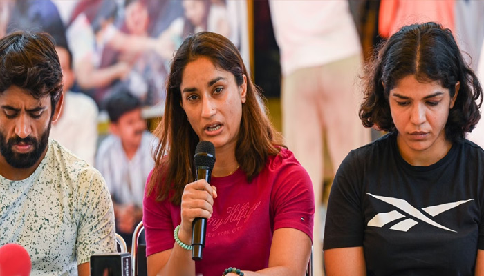 Vinesh highlighted that Sakshee Malikkh retired in protest against the newly-elected WFI body and that Bajrang Punia left his Padma Shri Award on the pavement of Kartavya Path in New Delhi as a mark of his stand.