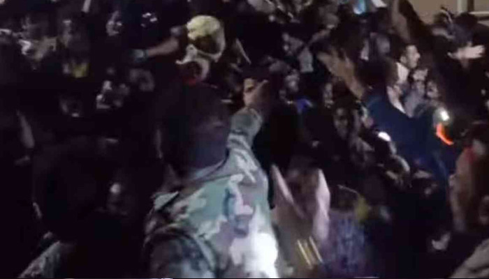 Many had their mouths covered by other people’s hands, the rest of their bodies engulfed by the dense crowd, the footage showed.